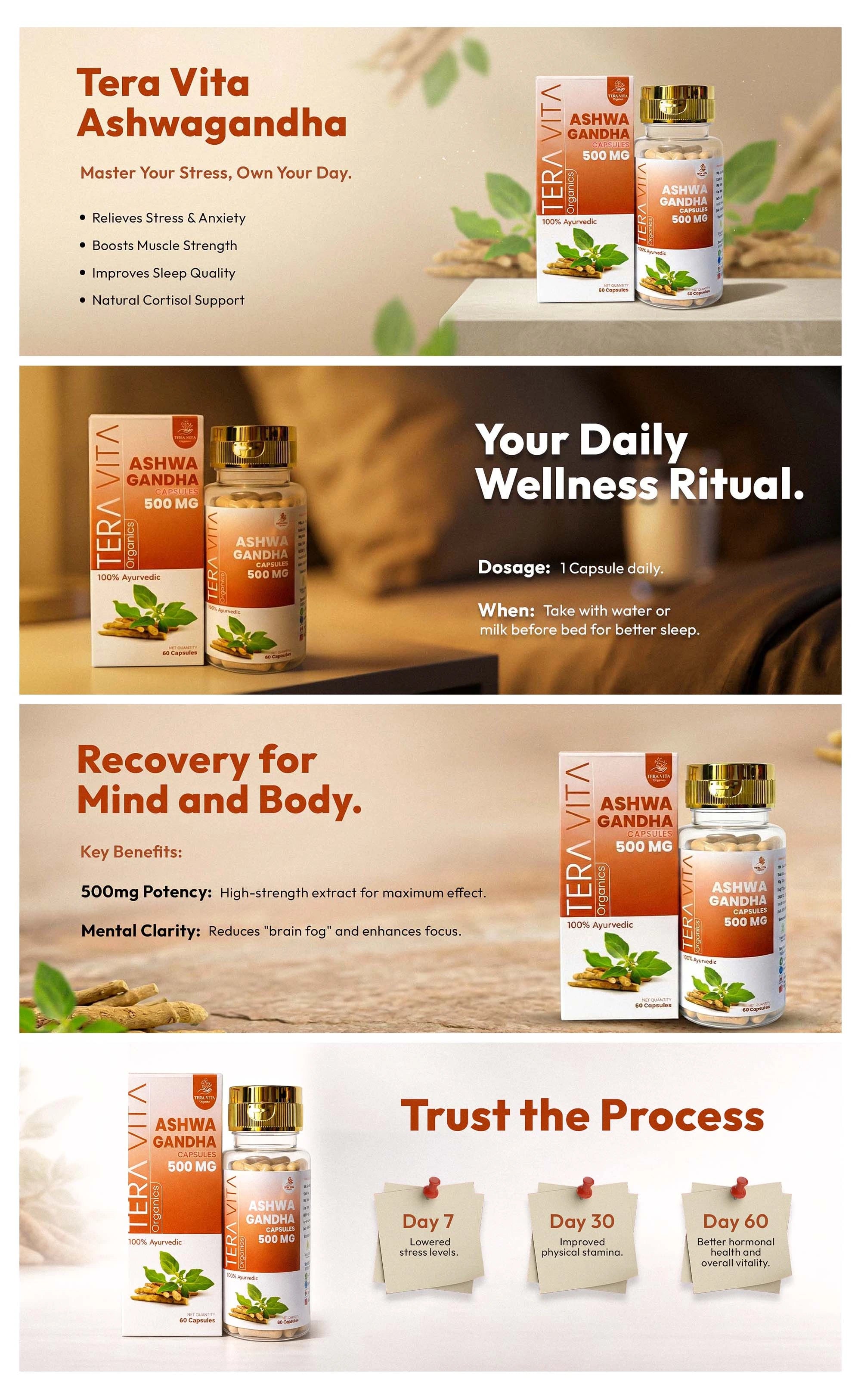 Ashwagandha Capsules 500mg – Stress Relief & Stamina Support – 60 Capsules